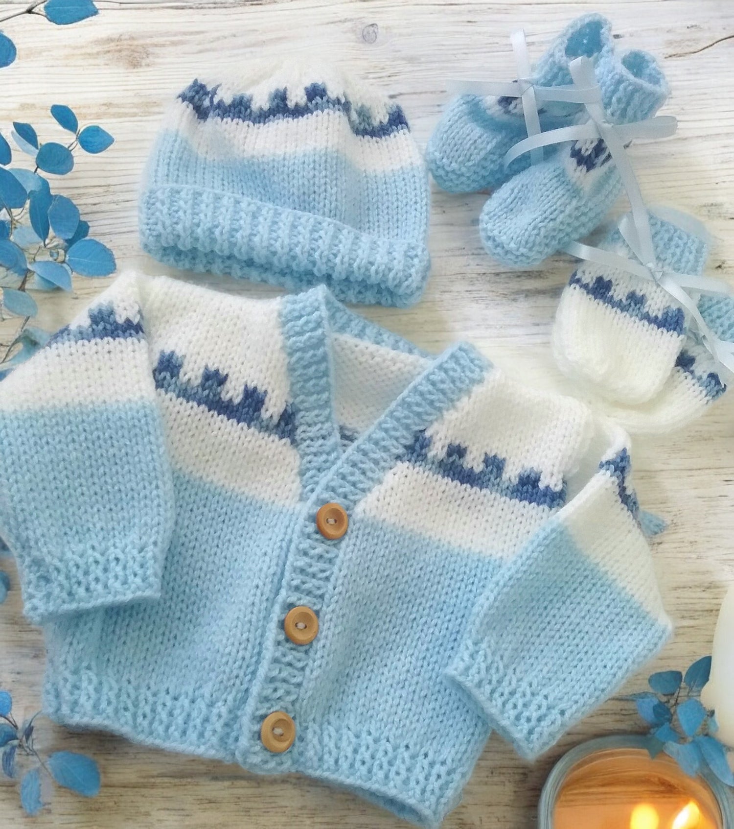 Get your little one ready to impress in our hand-knitted boys' Fairisle outfit! Perfect for any occasion, this cozy and stylish set is crafted with love and care. Order now and let your baby boy stand out in timeless knitwear that combines tradition with charm!