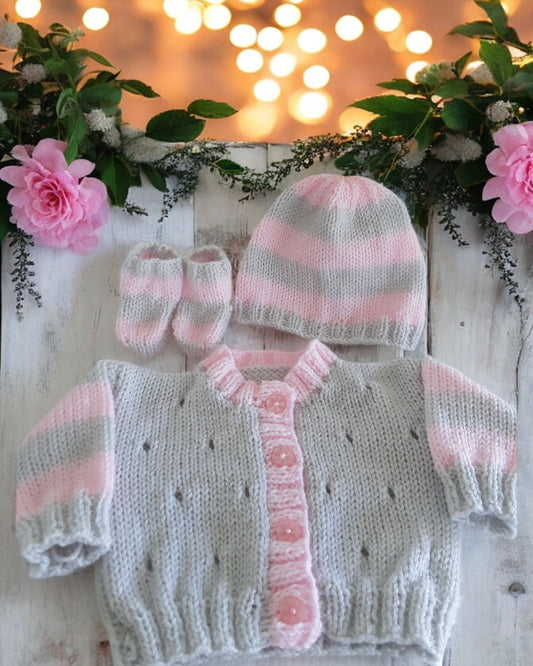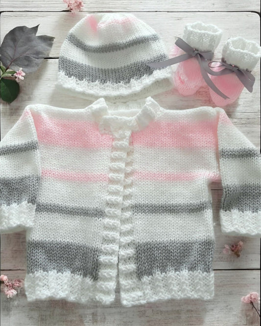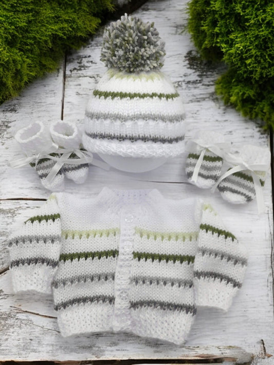 Stripy Knitted Baby Set – Cardigan, Hat, Mittens & BootiesRegular price From $42.00 NZDRegular priceUnit price / per-