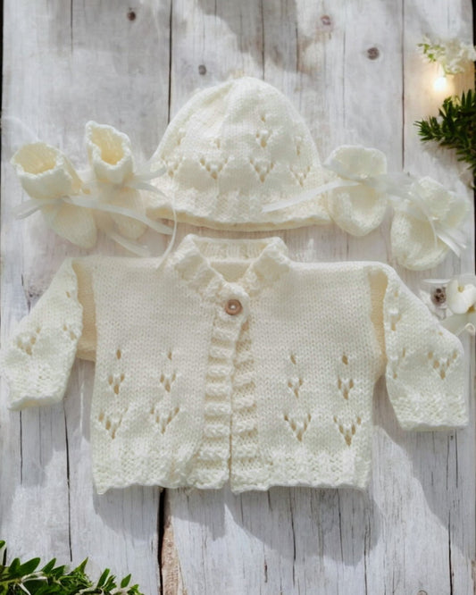 Handcrafted Baby Cardigan with matching hat, mittens & boots – Perfect for NewbornsRegular price From $58.00 NZDRegular priceUnit price / per-
