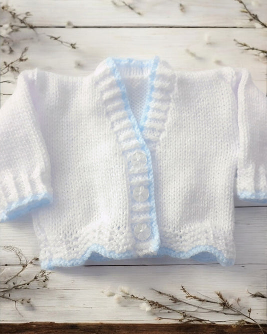 Scalloped Hem Baby Cardigan with V-Neck – Matching Hat, Mittens & Boots AvailableRegular price From $10.00 NZDRegular priceUnit price / per-