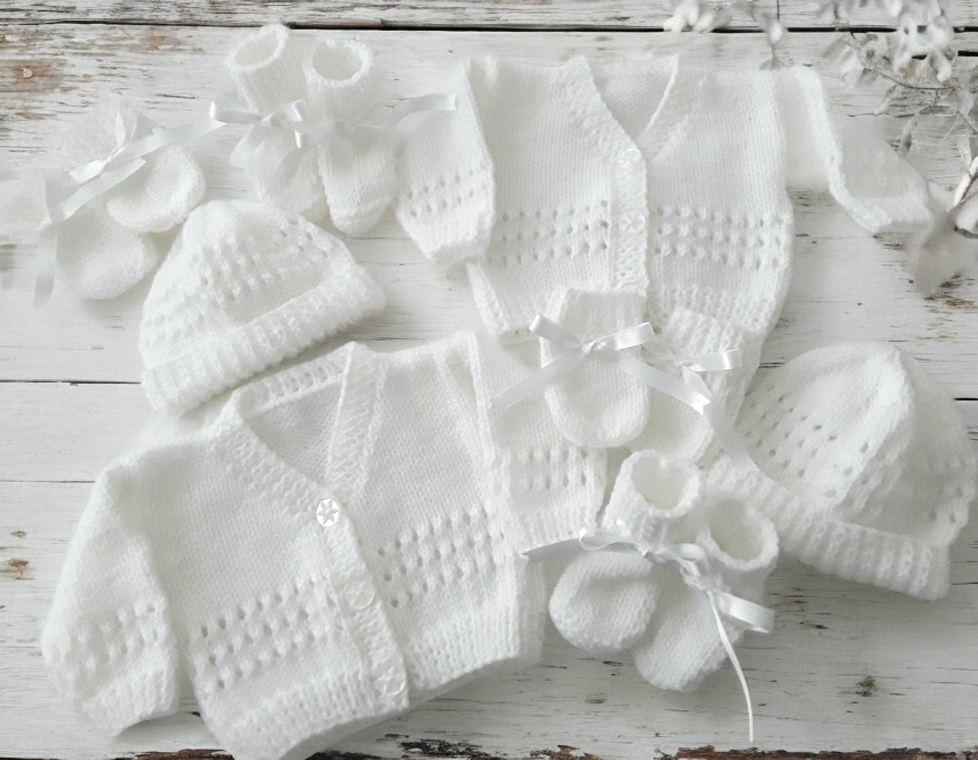 Hand-Knitted 4-Piece Coming Home Outfit in Gender Neutral Colors – Made to Order