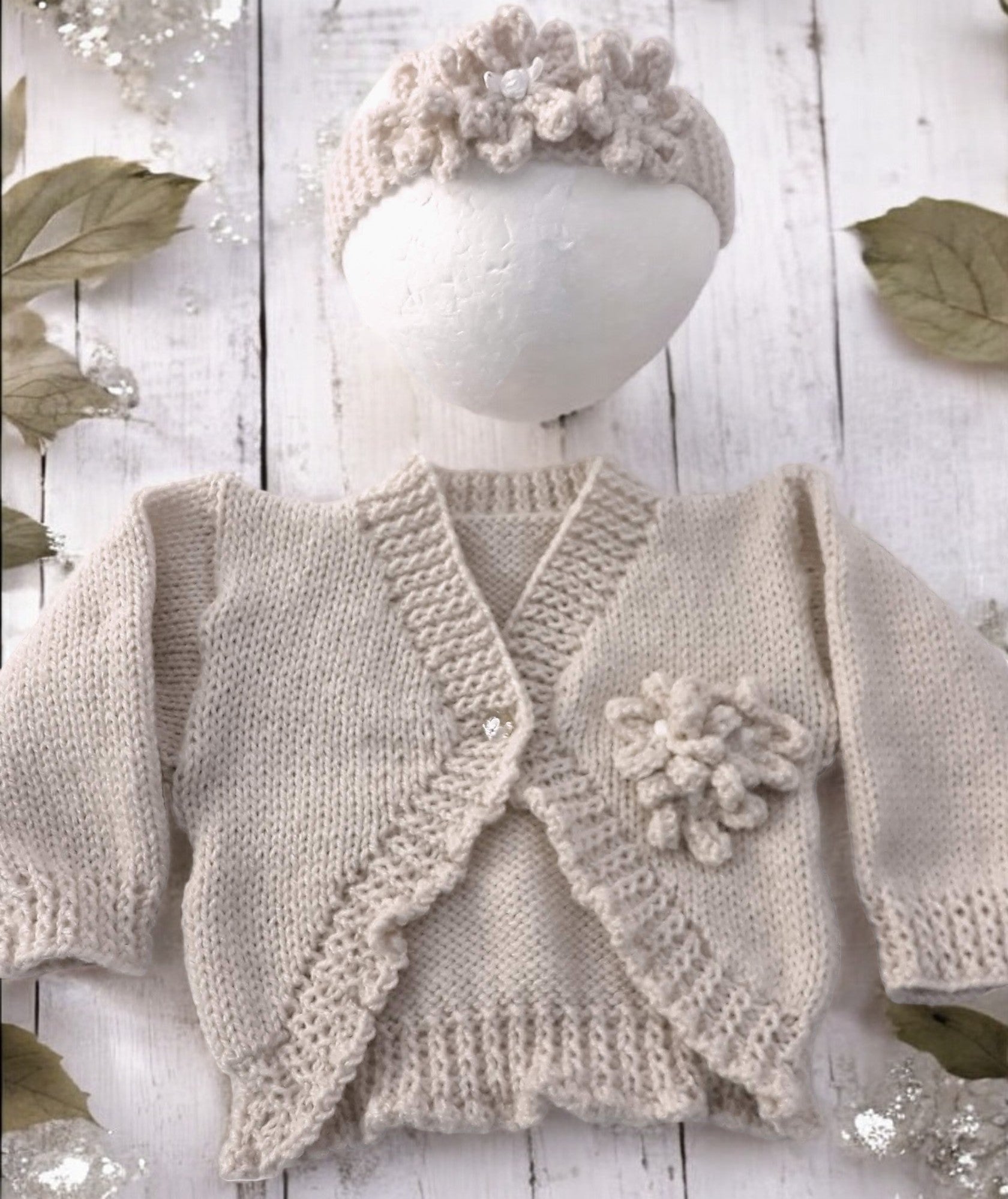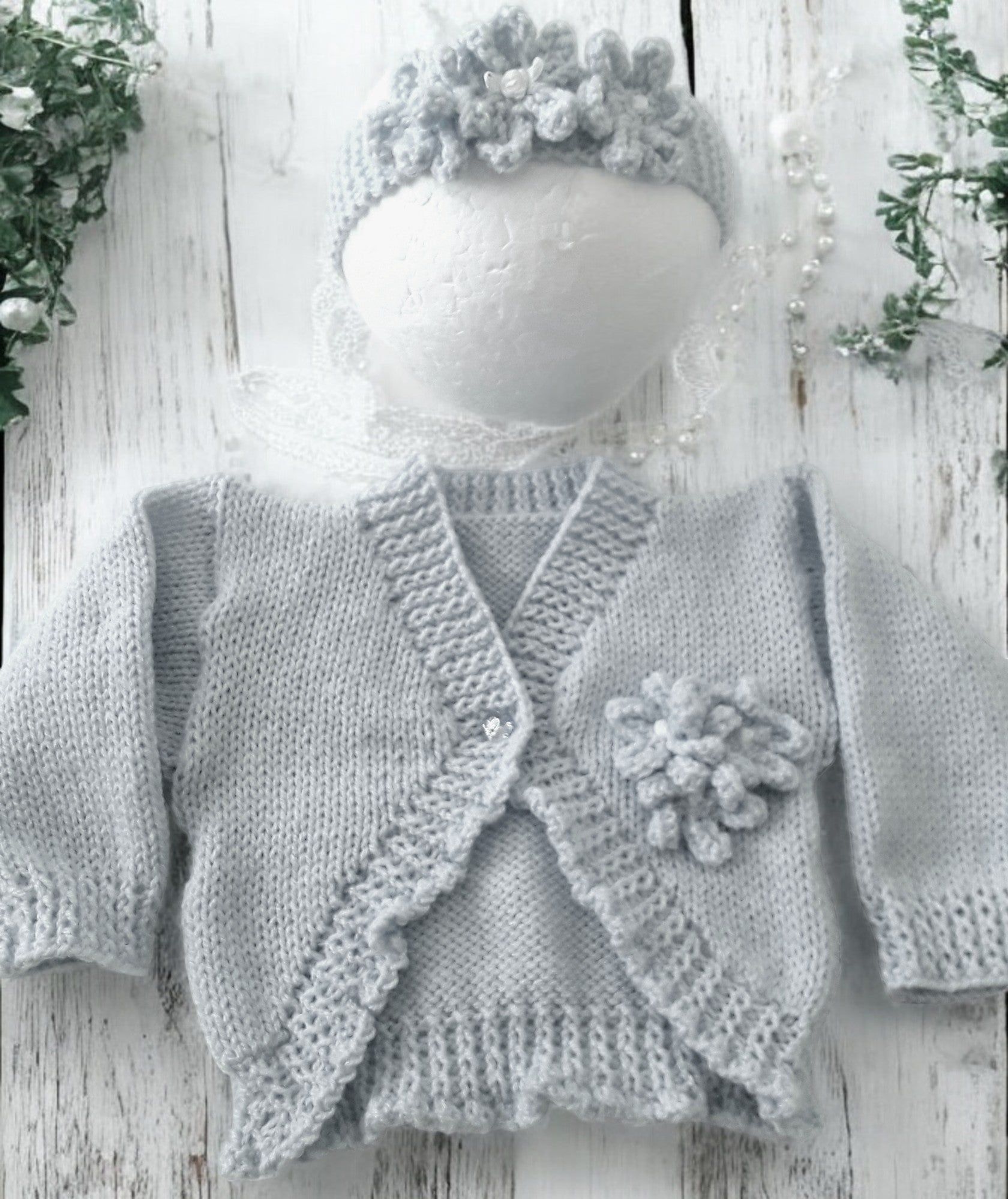 Ideal for outdoor outings or special occasions, this cardigan is available in a range of sizes, from preemie to toddler. Handmade-to-order, it offers a unique and timeless design. Allow time for crafting as each piece is carefully knitted with love in a smoke and pet-free environment. Let your little one bloom in this beautiful spring/summer outfit!
